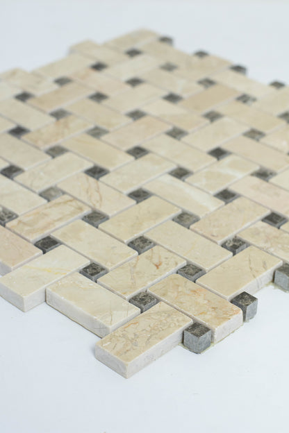 The Malla Kesh wall tile by Misiones Deco is a true design gem that offers a unique and original combination of natural marble in beige and cream tones. This model features a chain-type arrangement that creates a fascinating visual effect, adding dynamism and elegance to any space.