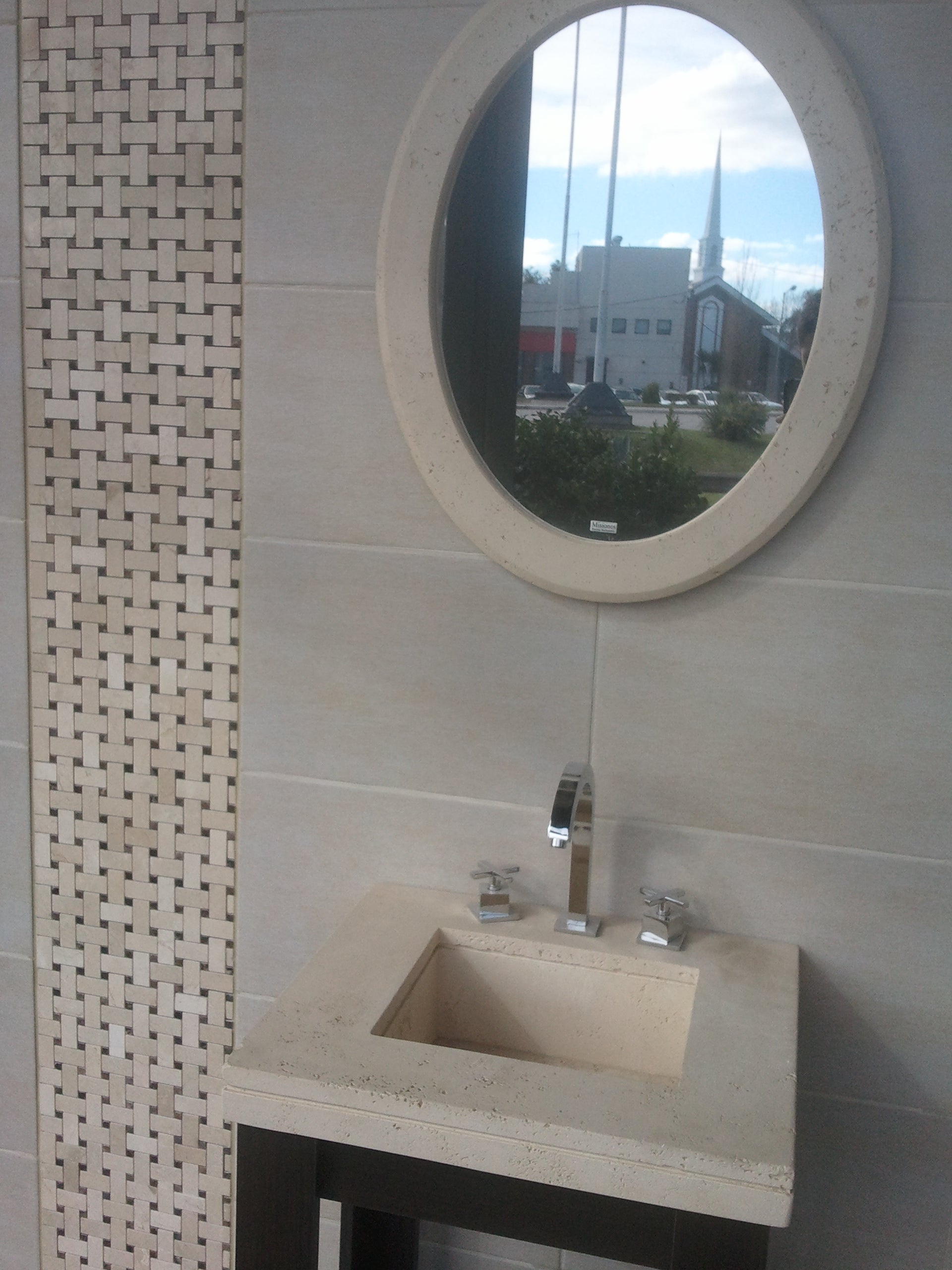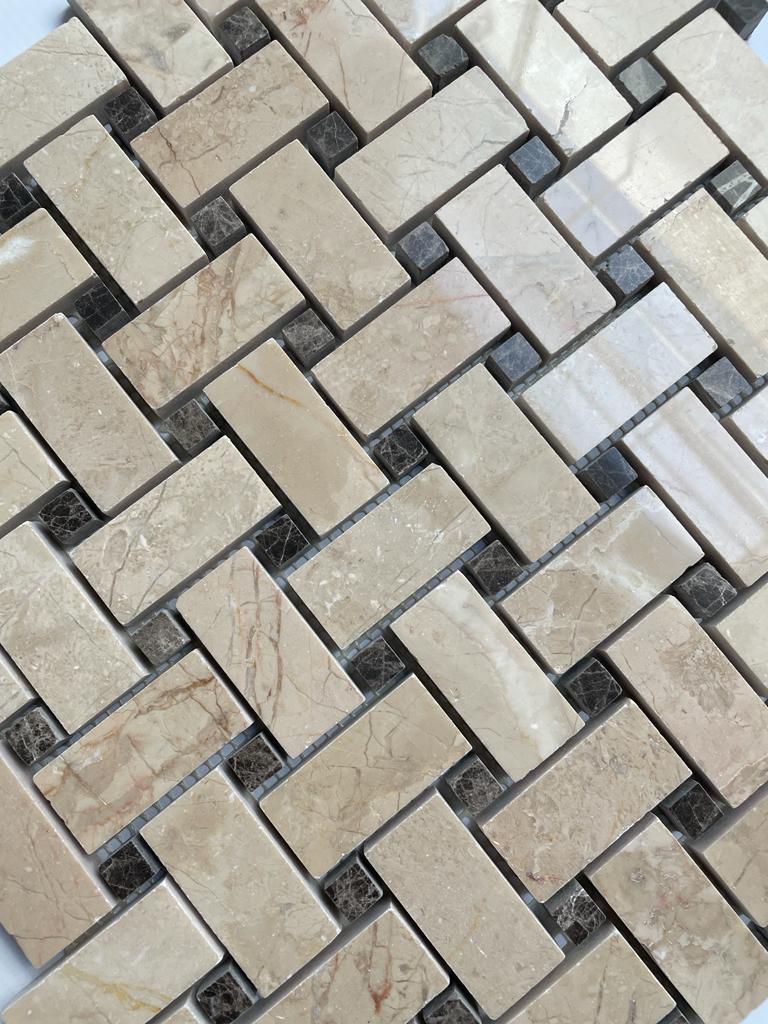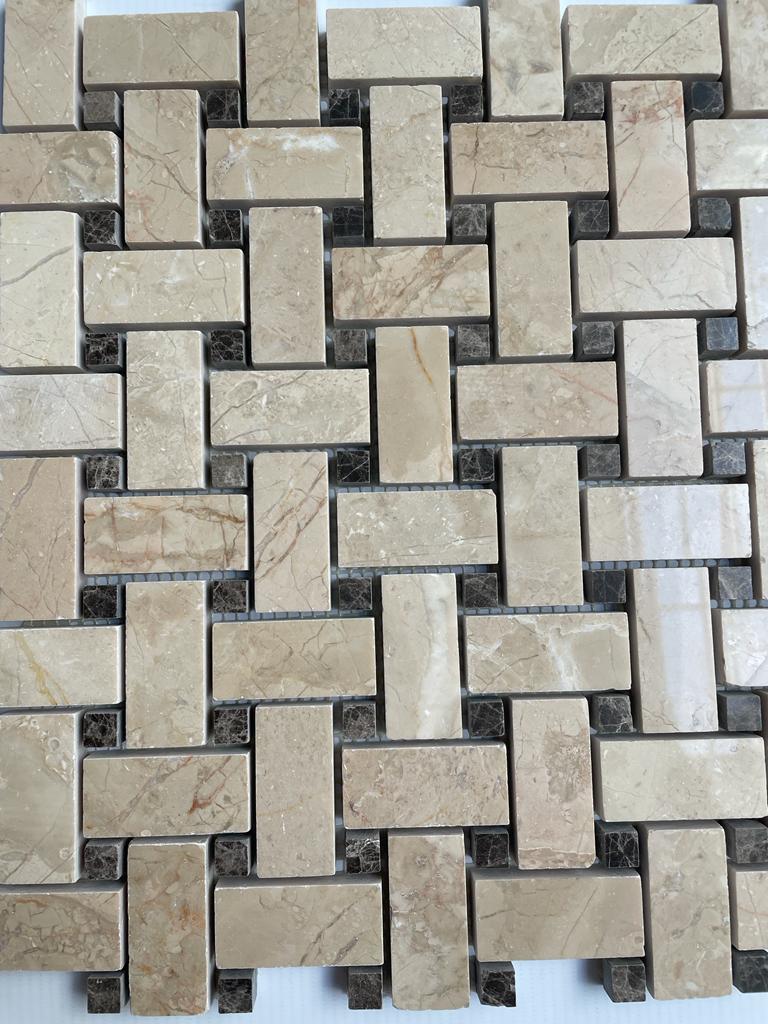 The combination of beige and cream natural marble in the shape of a chain creates a harmonious contrast that brings warmth and serenity to the environment. The natural texture of marble adds depth and character to the design, while the soft, neutral tones create a welcoming and sophisticated atmosphere.