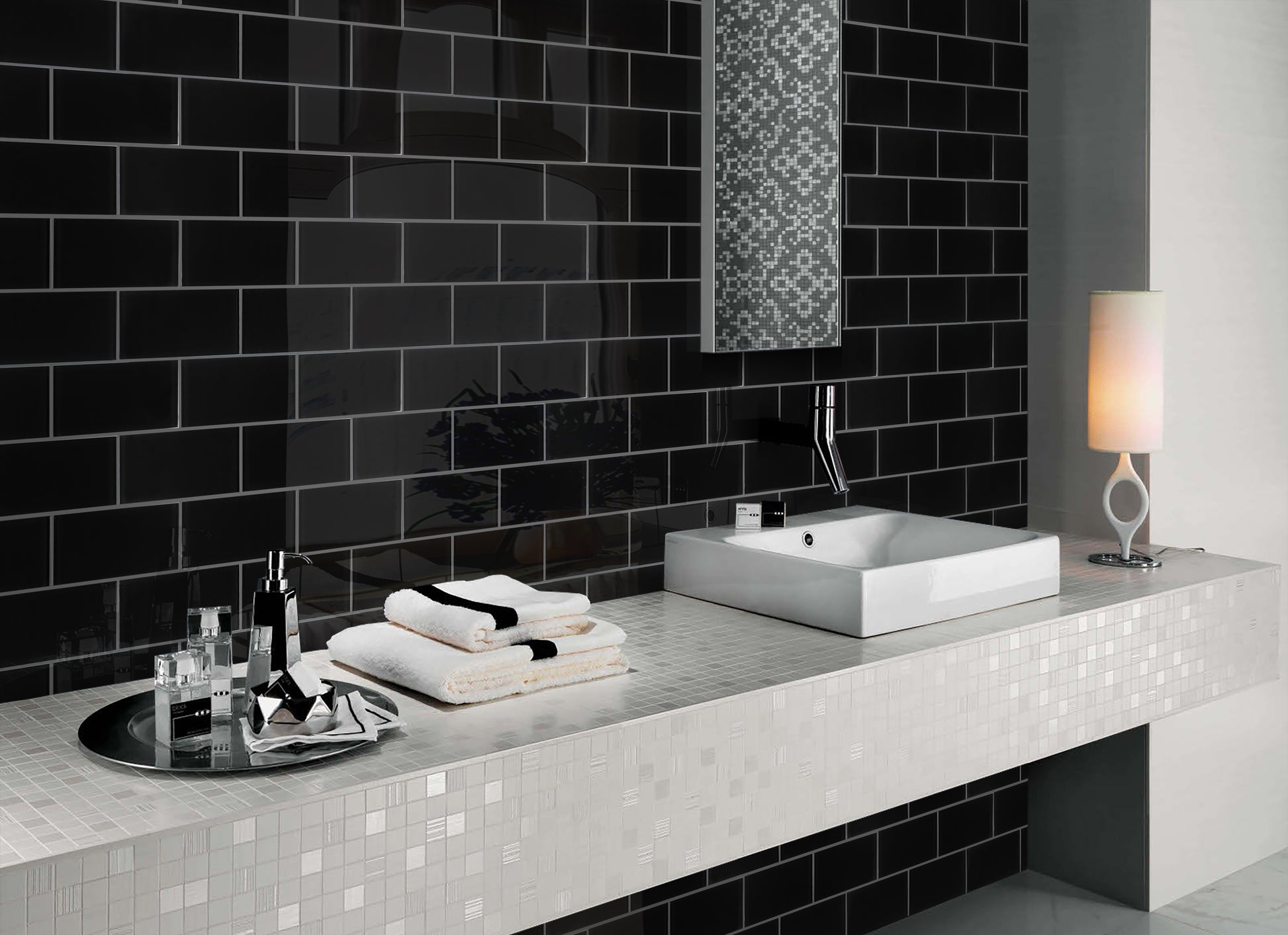 The glass covers great versatility the finish of the walls, providing luminosity, elegance, a feeling of spaciousness and cleanliness.