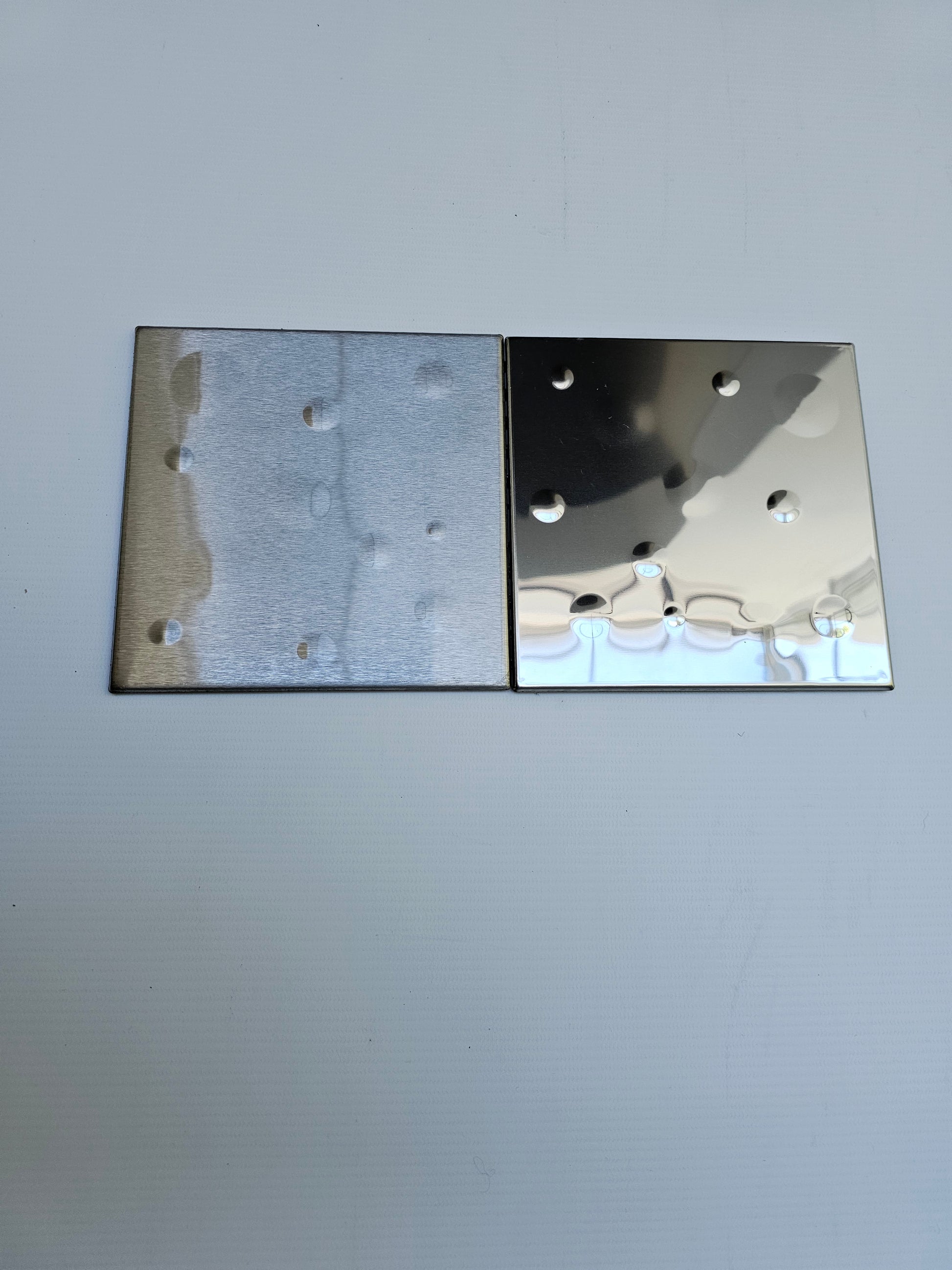 Su materia prima nos permite trabajar dos texturas las cuales son Acero Inoxidable Brillante y Acero Inoxidable Esmerilado (Comúnmente denominado cepillado). Realizando todo tipo de combinaciones tanto entre las terminaciones brillante y esmerilado.