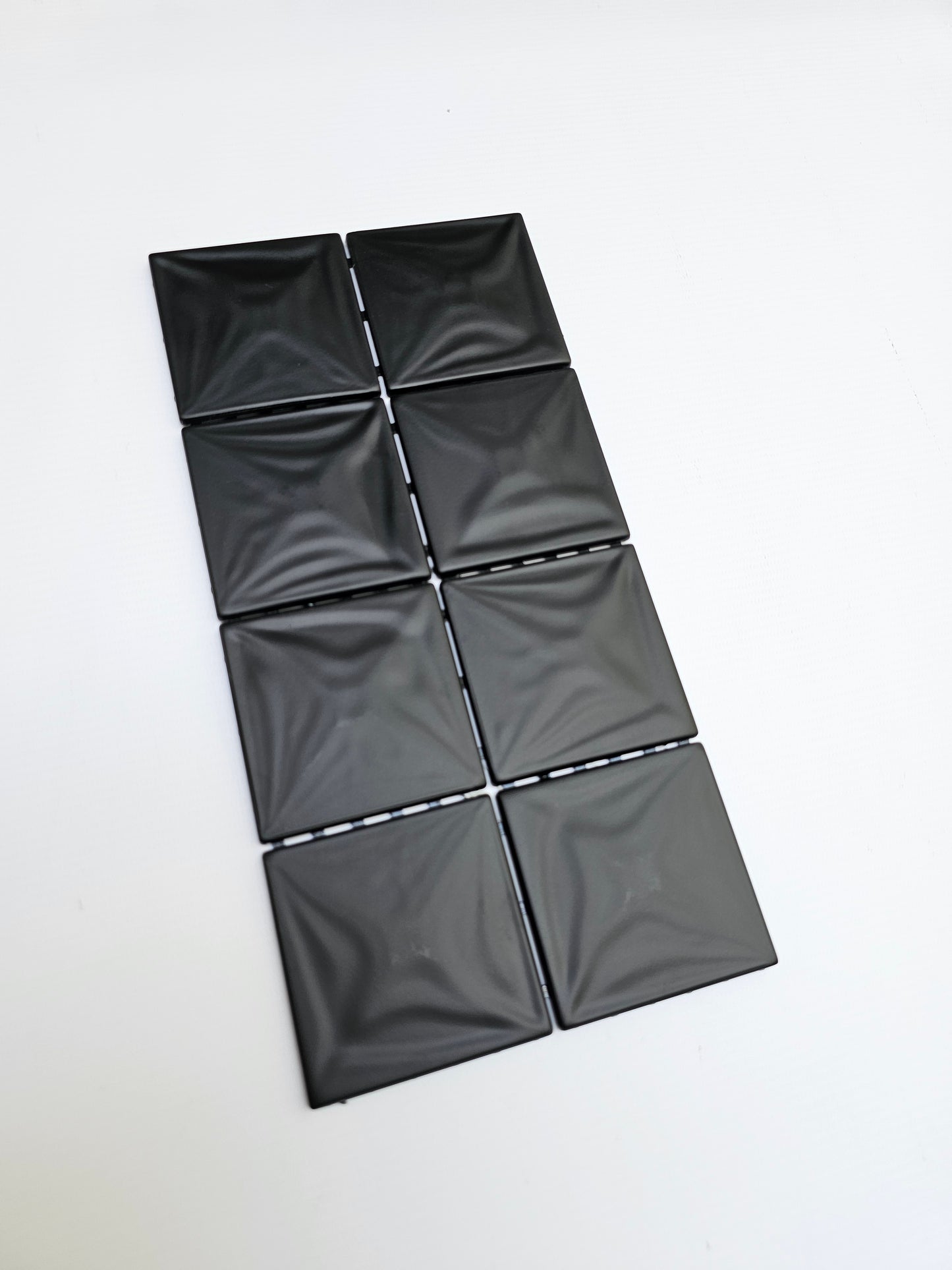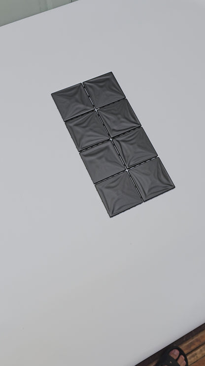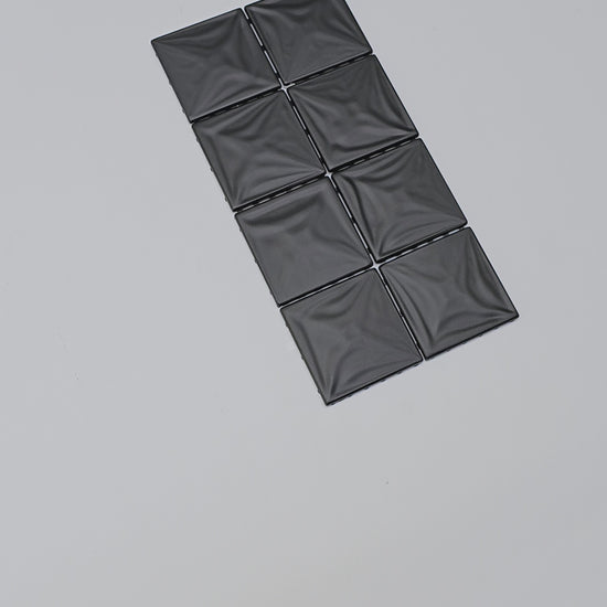 La superficie levemente texturada de los cuadraditos añade una sensación táctil interesante y una profundidad visual que captura la atención. Este detalle sutil agrega un toque de dinamismo al revestimiento, creando un ambiente moderno y acogedor.