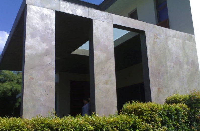 Piedrafina es una lámina de piedra (Real Natural de sedimentación) extraída de las canteras de India, donde se encuentran estos yacimientos de piedras tan especiales, bonitas y apreciables. Estas laminas se extraen como resultado de la fusión de la piedra de la montaña con una capa de fibra de vidrio y resina que componen la parte trasera del revestimiento. La superficie del revestimiento se verá tal cual es extraída de la roca de la cantera. Esta combinación de materiales (Piedra Natural + Adhesivo + Fibra de Vidrio + Resina de Poliéster) es lo que permitirá que la lámina sea flexible al mismo tiempo que resistente y que pueda curvarse para revestir, por ejemplo, una columna redonda.